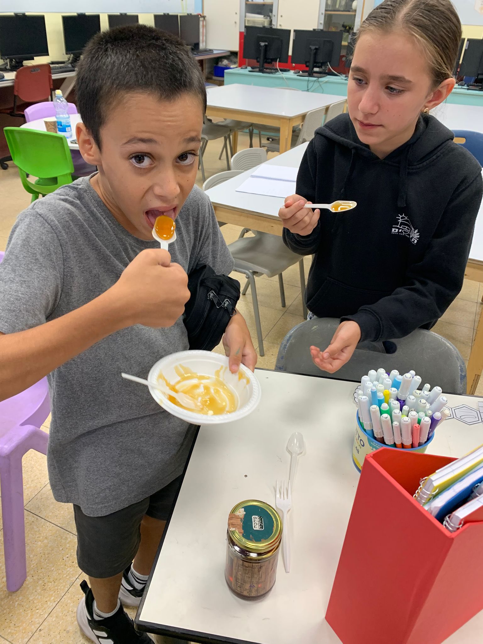 עם החזרה מחופשת סוכות, התקיימו בכיתות א'–ו' פעילויות חווייתיות ומרגשות, שבמהלכן הכינו התלמידים דגלי הודיה מלאים באיחולים, ציורים ומילות תודה איתם צעדו אל הטקס וקישטו את שער בית הספר.